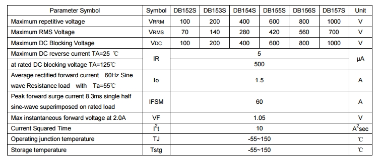 | 產(chǎn)品名稱: | 單相橋式整流二極管 DB157S |